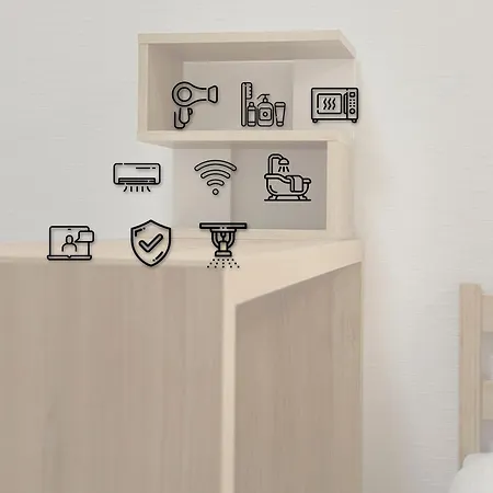 在客房您可以找到烟雾探测器 和气候控制等各种各样的设备。